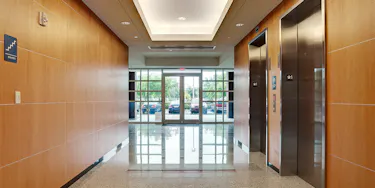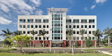 Miller used tilt-wall construction to build this five-story office condominium, which consists of four floors located above ground-level parking and a first-floor lobby. With its soaring exterior, Cornerstone Five is clearly visible from I-595. Making an impressive statement, the interior Class-A office space includes finishes such as granite floors and wood paneling. The building also includes an energy management system with generator backup. The biggest construction challenge on the relatively small site was finding space for casting beds needed to form and pour the tilt-wall panels.