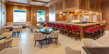 The new clubhouse includes a spacious main dining room on the first floor, expandable to include the smaller Cove Harbor room. Also on the ground floor is the Abenaki Lounge, the Cypress Bar and the Wine Room, plus children’s play room, club shop and covered terrace. In addition to administrative offices, the second floor features the Burgee Bar, the Commodore Room and the Gold Room for relaxing, dining and members’ events, with covered and uncovered terrace areas offering panoramic views of the Intracoastal Waterway.