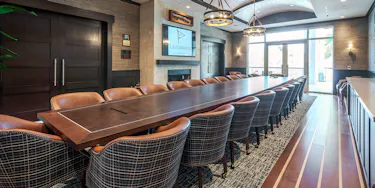 Upscale finishes by Miller’s craftsmen throughout the clubhouse include tongue and groove ceilings, custom millwork and intricate and varied tile patterns. On each floor, glass door track systems enable the club to open the glass wall between the interior and the terrace, extending the space.