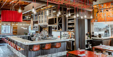 The Miller Special Projects Group transformed a former auto repair facility into the stylish tapas restaurant, where ample use of reclaimed wood brings the interior’s sleek metal and tile finishes a warm, rustic feel. The striking interior design garnered attention and won an award for Architectural Woodwork. The restaurant is adjacent to the upscale Valentino’s fine dining restaurant, which remained open throughout construction. To avoid affecting their daily operations, crews installed a temporary barrier. Since both restaurants would be under one roof, adding a full fire sprinkler system was required. That meant concealing pipes and closely coordinating work in the Valentino’s space to eliminate any impact on the restaurant’s schedule.